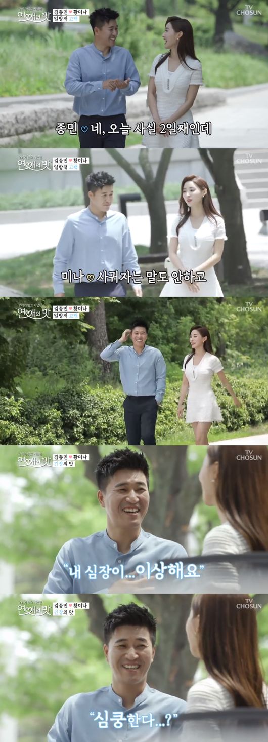 가수 김종민이 솔로 4년차에 ‘연애의 맛’에 출연했다. TV조선 기상캐스터 황미나와 데이트를 시작한 김종민, 솔로 탈출에 성공할 수 있을까.