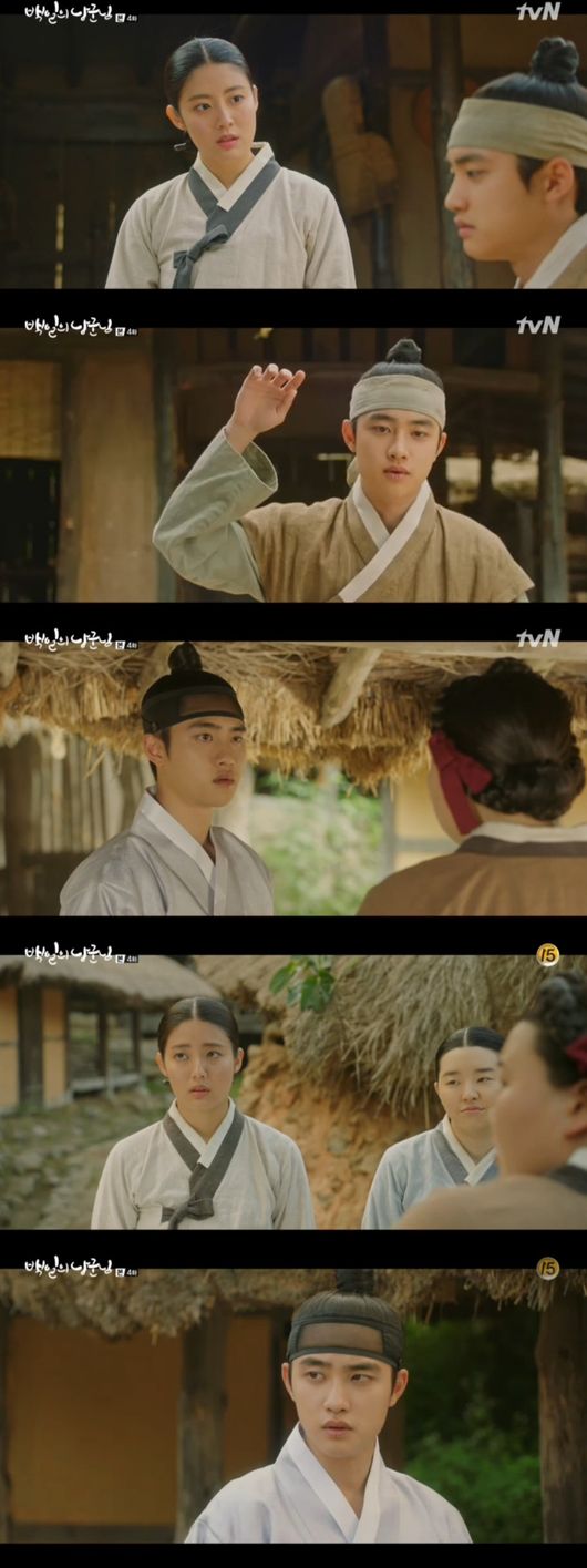 18일 방송된 tvN 월화 드라마 '백일의 낭군님(연출 이종재,극본 노지설)'에서 고리대금으로 큰 빚을 지게 만든 원득(도경수 분)이 일꾼으로 전락했다.