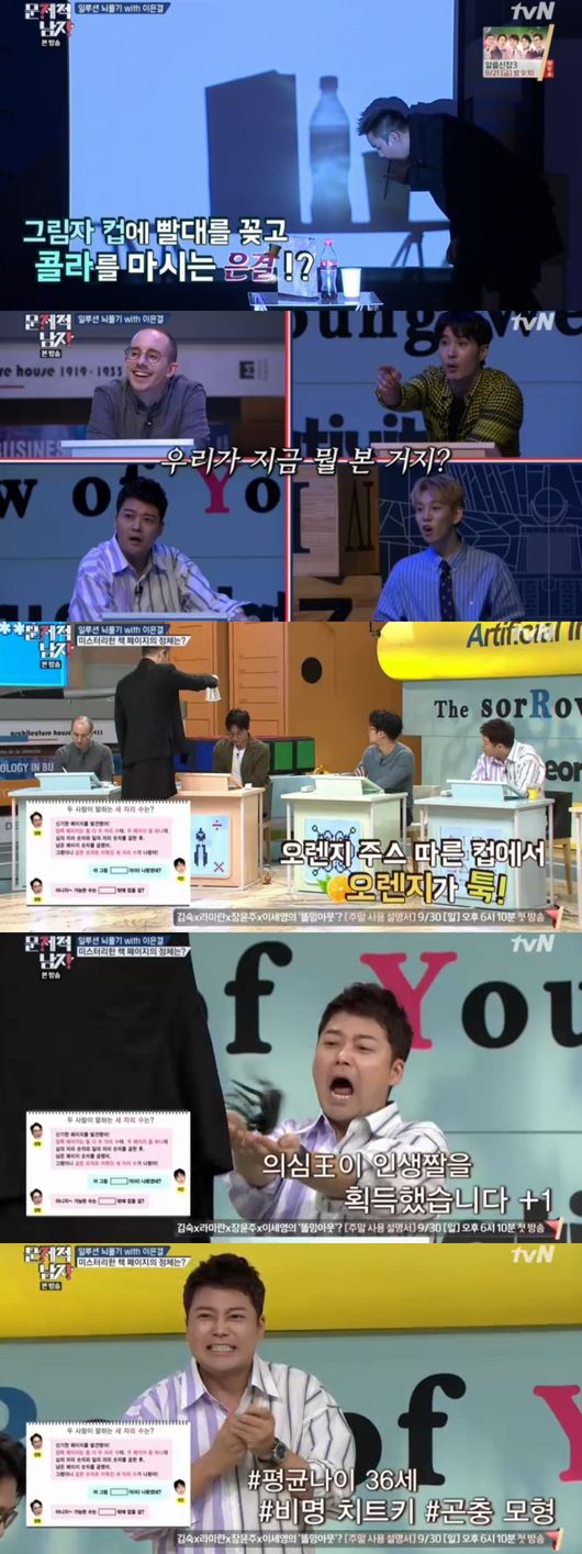 첫번째 문제를 풀면서, 이은결은 생일은 장원을 위해 오렌지 쥬스를 따라서 컵에 전했다. 하지만 컵안에서는 쥬스가 아닌 오렌지가 나왔다. 모두 눈이 휘둥그레졌다. 이어 컵에 콜라를 따랐고, 이은결은 "상상력을 동원해라"고 했다. 모두의 궁금증 속에서 곤충모형이 나았고, 전현무는 기겁하며 도망쳐 웃음을 안겼다.