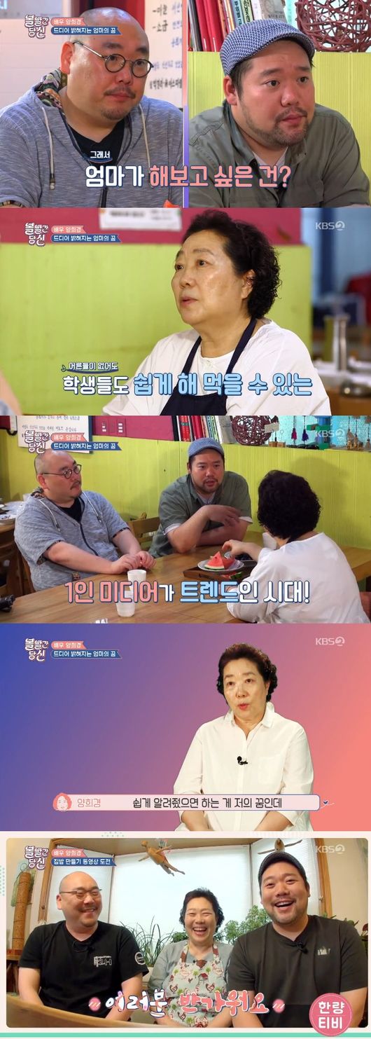 지난 18일 방송된 KBS2 ‘볼빨간 당신’에서는 집밥 영상 만들기에 도전하는 양희경과 두 아들들의 모습이 그려졌다.
