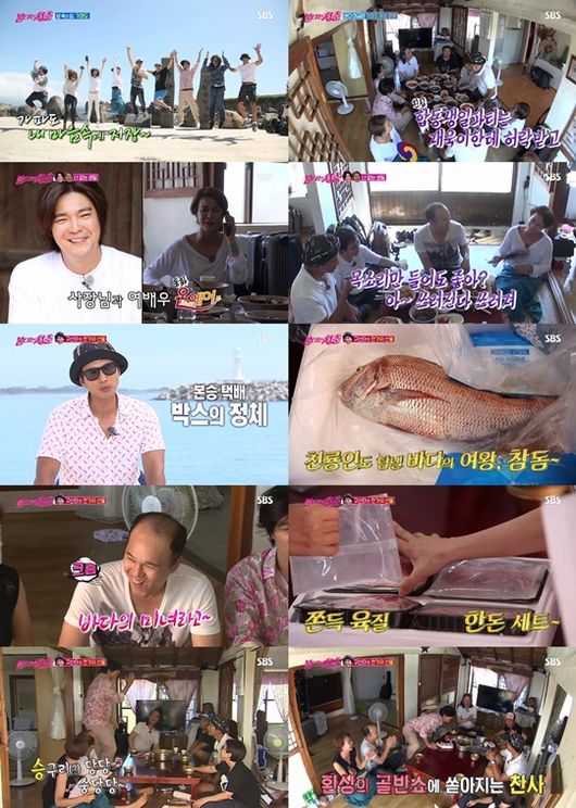 이어 구본승은 형, 누나들에게 선물을 준비했다며 엄청 큰 아이스박스를 가져와 궁금증을 안겨줬다. 낚시를 갔다가 선장님이 잡은 ‘자연산 참돔’을 직접 숙성시켜 가져온 것. 본승은 참돔을 ‘바다의 미녀’라고 부른다며, 김광규에게 미녀를 소개시켜 주고 싶었다고 전해 주위를 웃음 바다로 만들었다. ‘구본승’ 이름 삼행시 짓기에서는 최성국이 ‘승구리(?) 당당 숭당당’ 으로 환상의 골반쇼를 선보여 새 친구 전유나의 웃음이 폭발하기도 했다.