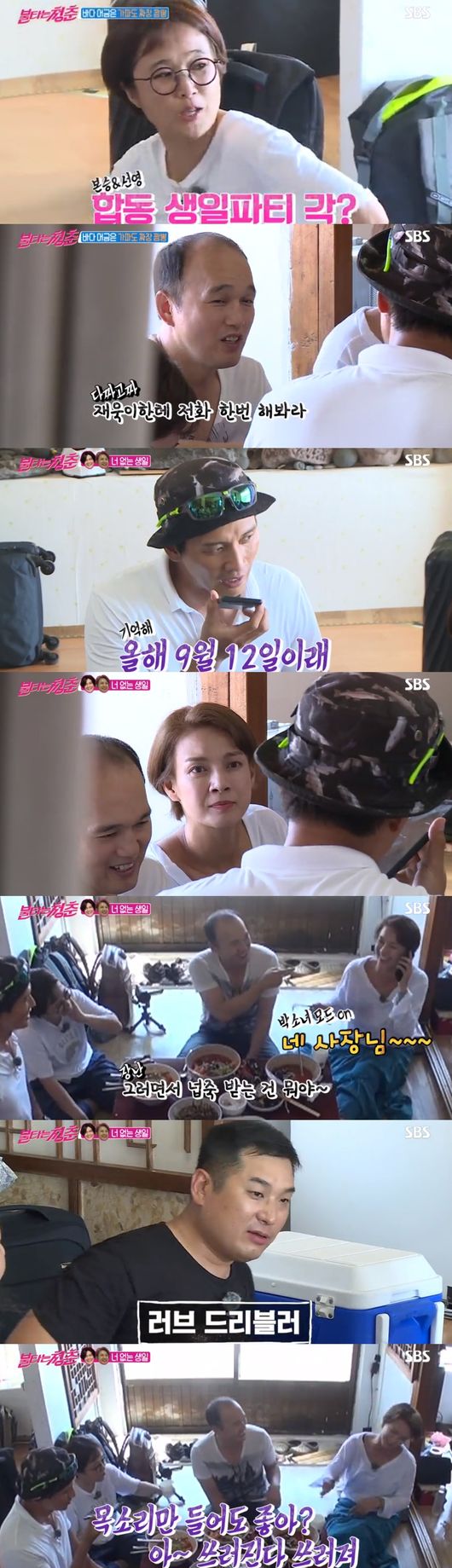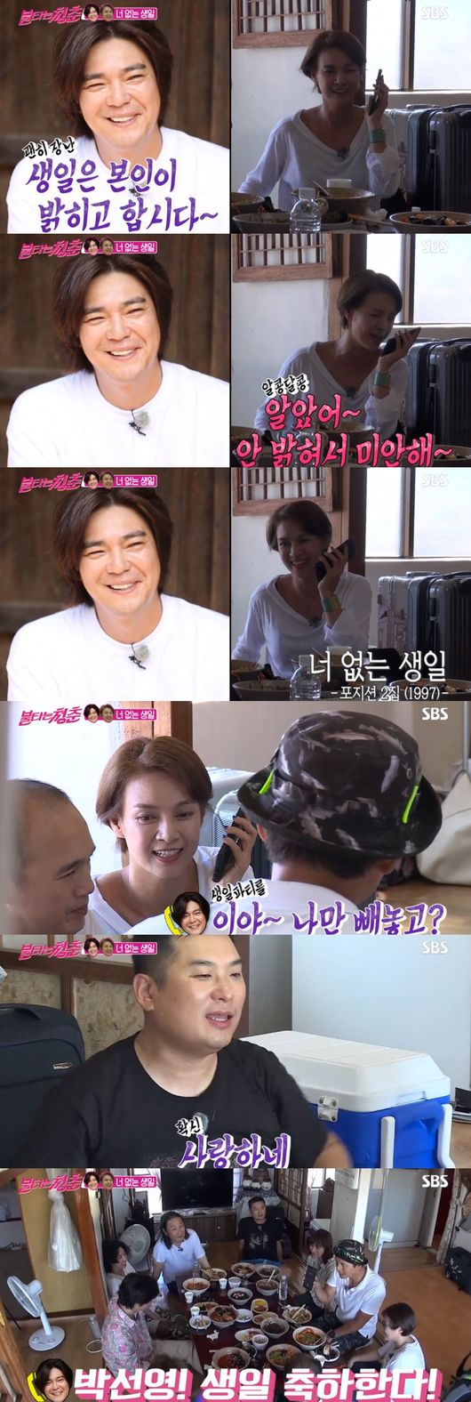 18일 방송된 SBS '불타는 청춘'에서 멤버들은 가파도에서 짜장면과 짬뽕을 즐기며 도란도란 이야기를 눴다. 그러다가 9월 생일인 멤버 얘기가 나왔고 구본승과 박선영이 곧 생일을 맞이하는 주인공이었다.