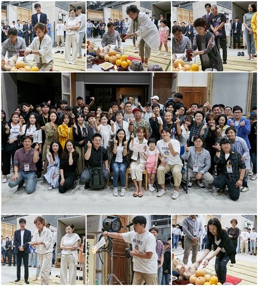 마지막으로 김성용 감독이 축문을 불태운 후 “‘내사랑 치유기’ 파이팅!”이라고 선창하자, 원영옥 작가, 출연 배우, 제작진이 팔을 높이든 채 “파이팅”을 외치고 큰 함성과 박수갈채를 보냈다. 이어 제작진 모두의 ‘대박 기원 에너지’를 모은, 손가락 하트로 단체 사진을 찍으며 성공적인 고사를 마무리 했다.