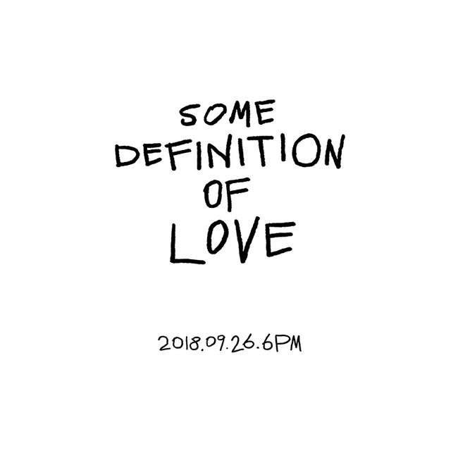 공개된 이미지 속에는 썸데프의 자필 폰트로 앨범명 ‘Some Definition of Love’와 발매일시를 나타내는 ‘2018.09.26.6PM’이라는 문구가 적혀있다.