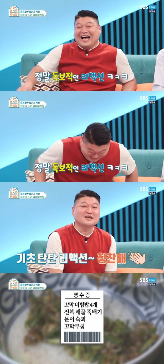 이날 네 사람은 ‘1인 1족발’을 먹은 후 꼬막과 문어 맛집 정복에 나섰다. 무아지경 먹방을 즐기던 홍윤화는 남자친구 김민기에게 문어를 먹여주며 예비부부의 애정을 과시했다. 이에 기분이 좋아진 김민기가 뽀뽀를 요구하자 윤효동은 “이 욕망 덩어리”라며 두 사람을 시샘했다.