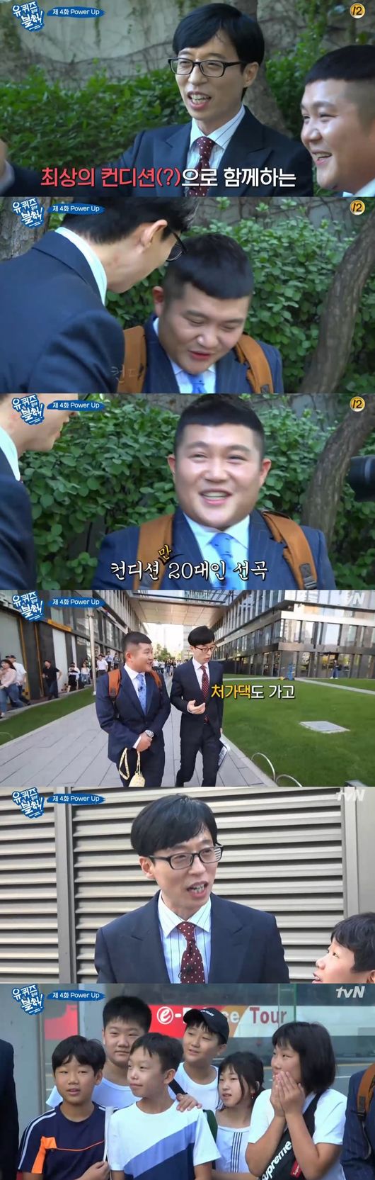 유재석은 전날 3시간 밖에 못잤다는 조세호에게 "눈이 충혈됐다"며 "저는 컨디션이 너무 좋아서 미쳐버릴 것 같다"고 말했다. "자기 관리를 해야한다"며 "어제 10시부터 잤다. 몸 컨디션이 20대 초반이다"라고 말하며 길거리에서 댄스를 춰 웃음을 자아냈다.