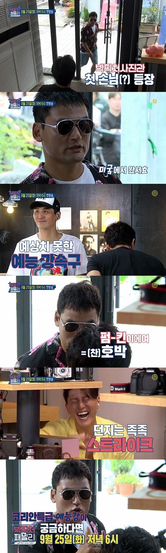 티저는 “어서오세요”라는 차인표의 인사에 이어 ‘빅픽처사진관’의 첫 손님을 가장한 박찬호의 등장으로 시작됐다. 화려한 프린팅의 하와이안 셔츠와 선글라스를 끼고 입장한 박찬호는 들어오자마자 “Hello~”라고 인사했고, 곧바로 “미쿡에서 왔서효”라고 ‘교포 손님’ 상황극을 펼쳐 모두를 당황하게 만들었다.
