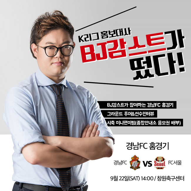 ‘BJ감스트’와 함께 추억을 남기고 싶은 팬들은 22일 오후 2시 K리그1 29라운드 FC서울과 경기가 펼쳐지는 창원축구센터를 찾으면 된다./dolyng@osen.co.kr