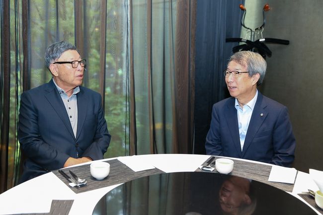KBO 정운찬 총재가 20일 서울 강남구 역삼동에서 KSBA(대한야구소프트볼협회) 김응룡 회장과 회동하고 한국야구의 전반적 현안에 대해 의견을 나눴다.