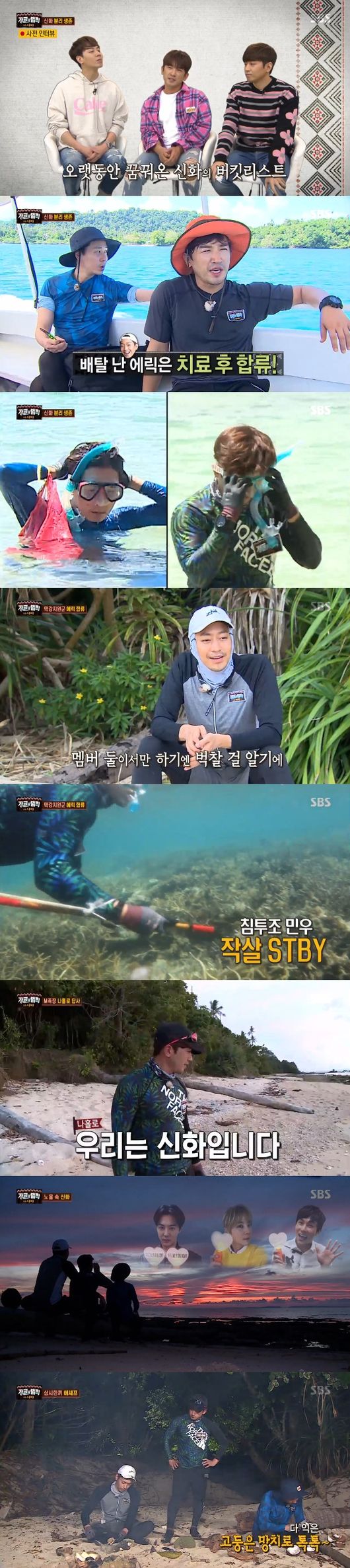 그룹 신화 멤버들이 팀워크를 발휘하며 정글에서 분리 생존에