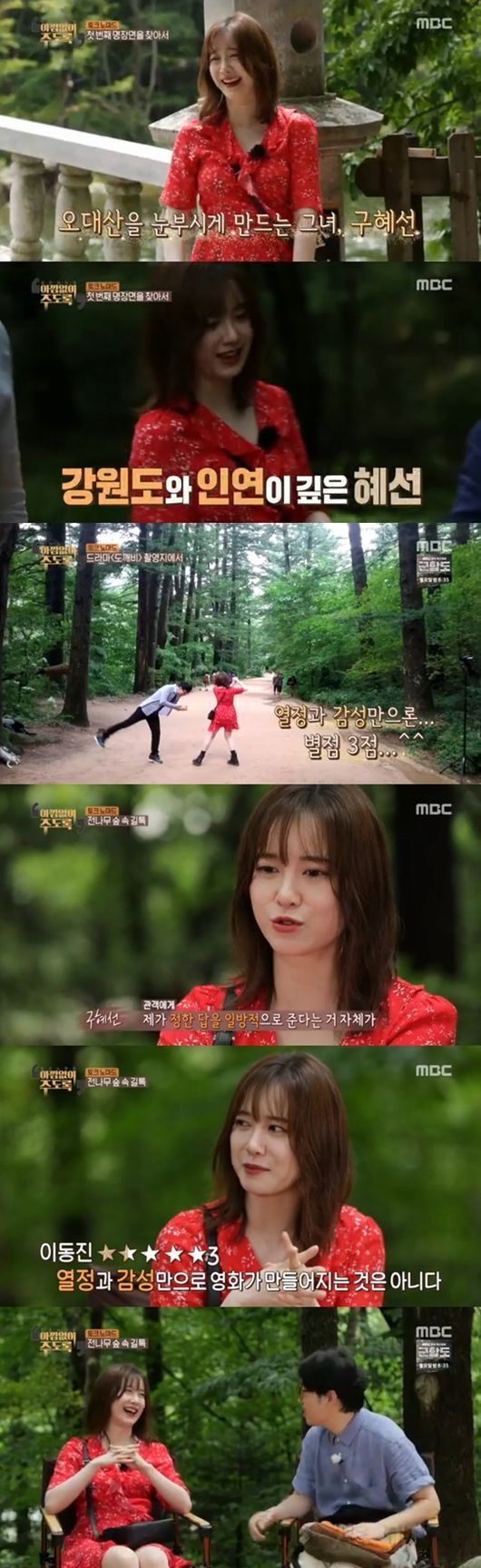 강원도뿐 아니라, 이동진 평론가와도 특별한 인연이 있는 구혜선. 구혜선은 "내 첫 장편영화 '요술'을 선생님께서 평론을 해주셨다. 아직 기억하고 계시냐. 악평을 해주셨다. 성장을 할 수 있는 계기였다"고 말해 웃음을 자아냈다. 이동진은 "다 업이다. 오늘 열심히 하겠다"고 진땀을 흘렸고, 구혜선도 "이동진 평론가님이 평론을 해주셨다는 것만으로도 너무 영광된 일이다"며 손을 내저었다.