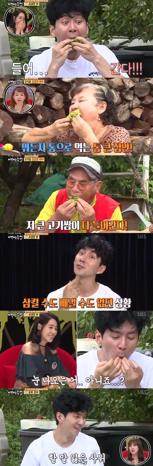 하지만 이 역시 도전했다. 권해성도 장인 장모처럼 크게 쌈을 쌌는데 눈이 튀어나올 듯해 보는 이들을 웃음 짓게 했다. 상추가 목구멍을 찌르는데도 장인과 장모를 위해 끝까지 야무지게 먹었다. 입 작은 사위를 위해 장모는 상대적으로 작은 쌈을 싸서 줬고 세 사람은 한층 더 가까워졌다.