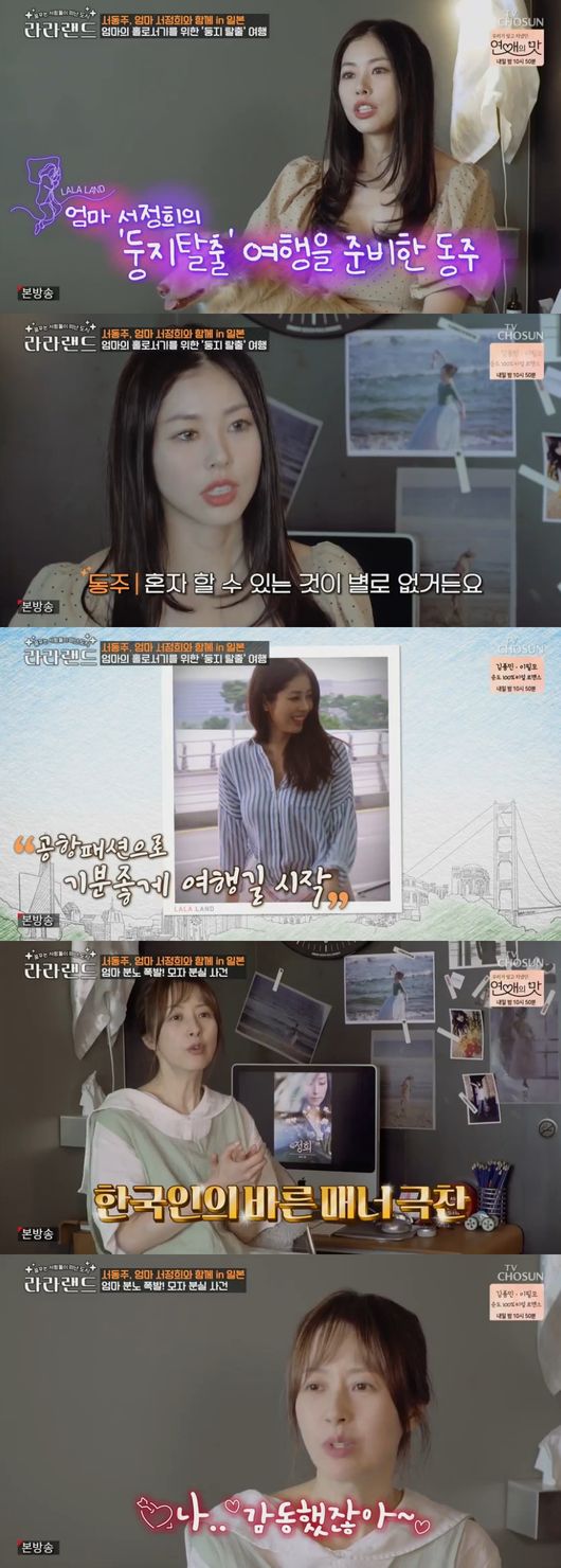 22일 방송된 TV조선 예능 '라라랜드'에서 서정희, 서동주 모녀여행이 감동을 안겼다. 샌프란시스코에서 홀로서기를 시작한 서정희의 딸, 서동주의 일상이 그려졌다. 오뚝이 서동주가 시작한 인생 2막이었다.