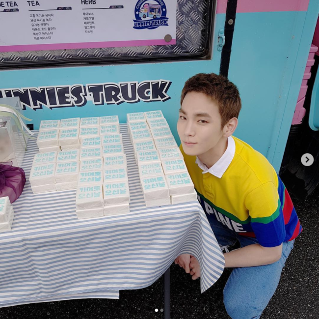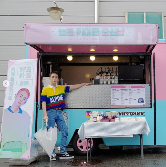 키의 인스타그램에는 생일을 맞아 커피차 선물을 받은 모습이 공개됐다. '놀토 키어로 오신 날', '키즈 카페 오픈'이라는 센스 있는 문구가 돋보인다.