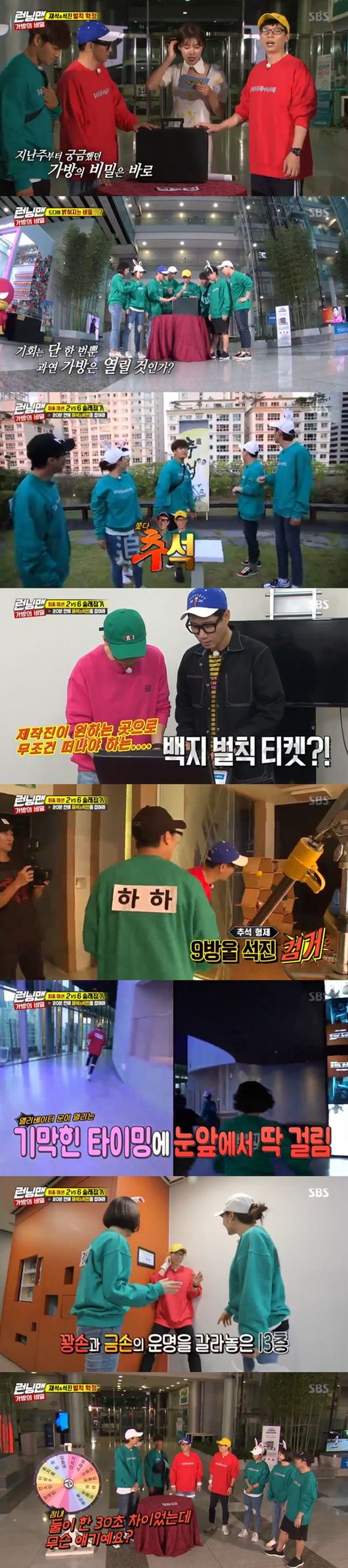 23일 오후 방송된 SBS 예능 프로그램 '런닝맨'에서는 가방의 비밀을 풀기 위한 고군분투 레이스가 그려졌다.