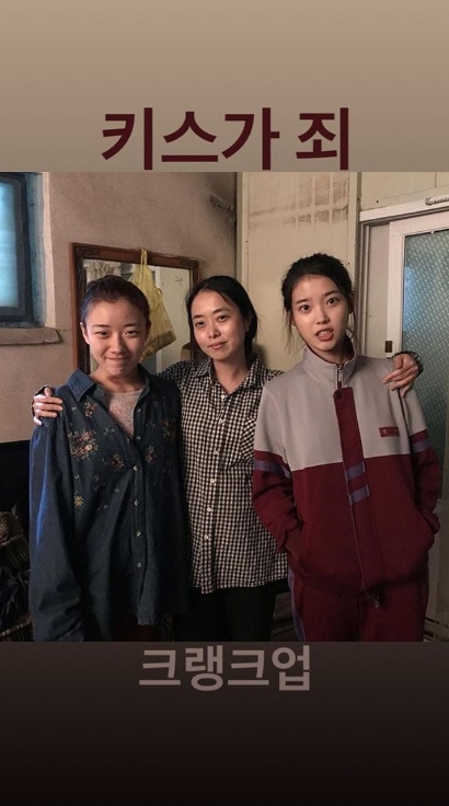 아이유가 '소공녀' 전고운 감독, 충무로가 주목하는 신예 심달기와 영화 '키스가 죄' 촬영을 마쳤다.