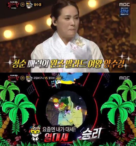 이어 과일바구니와 열대세가 무대를 꾸몄고, 과일바구니는 시중현의 '빗속의 여인'을, 열대세는 김윤아의 '야상곡'을 자신만의 감성으로 소화했다. 이번 무대 역시 치열한 접전이 벌어졌으나 열대세가 방청객의 선택을 받았고 복면을 벗은 과일바구니의 정체는 원조 청순 발라드 여왕인 양수경이었다. 양수경은 "올해로 데뷔 30주년이다"라며 "사실 1라운드에서 떨어질 줄 알았다"라고 겸손한 모습을 보여 감탄을 자아냈다.