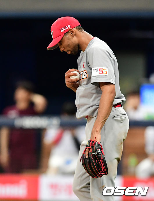 SK 외국인 투수 앙헬 산체스(29)의 추락이 이어지고 있다. 부진한 성적에 부상까지 겹쳤다. 내년 재계약 기상도도 구름이 잔뜩 끼었다.