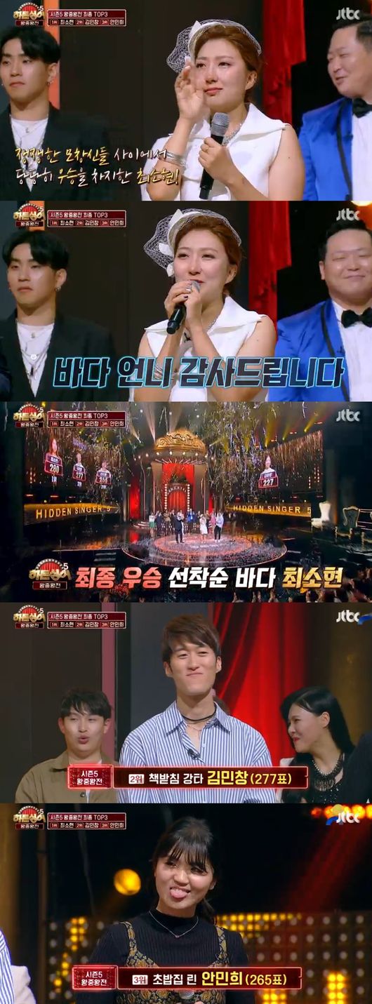 최종순위는 3등 안민희, 2등 김민창, 그리고 상금 2천만원과 유럽 오아복항공권 주인공은 280표로 최소현이 1위를 차지했다. 킹오브 히든싱어의 모창신으로 등극했다. 무엇보다 7연속 부동의 1위를 지킨 안민희를 밀어내며 판도를 바꾼 그녀였기에, 더욱 뜻 깊은 우승을 차지했다.