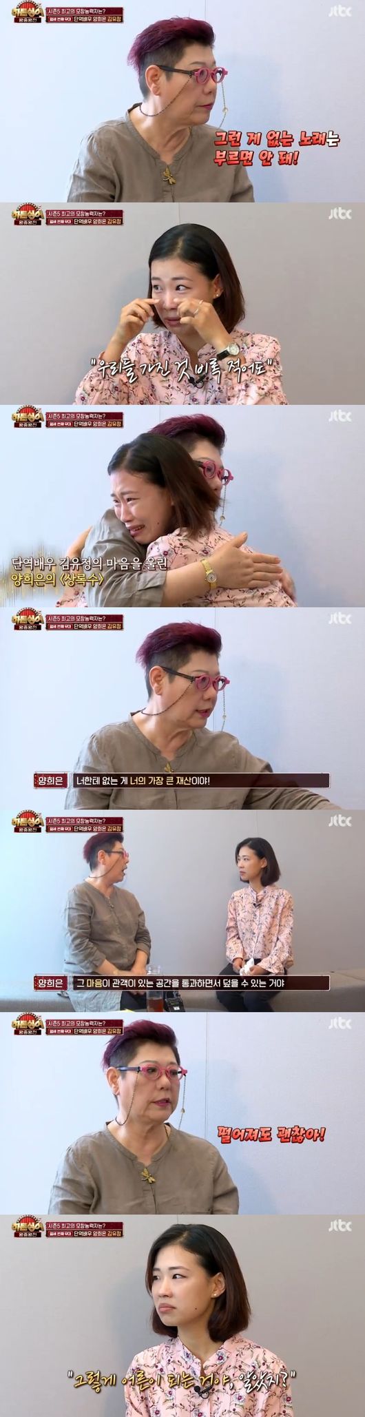 대망의 마지막 무대만 남았다. 탑쓰리 구도를 깰 수 있을지 주목됐다. 무대 주인공은 단역배우 양희은 김유정이었다. 원조가수를 닮은 깊은 울림과 감성을 보여준 그녀였다. 작지만 단단한 내공을 지닌 소유자였다.