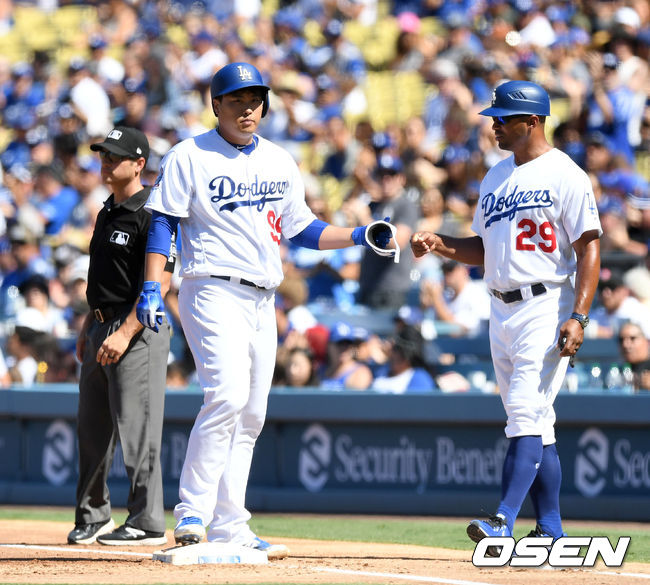 류현진은 2회 첫 타석에서 깔끔한 좌전안타를 때렸다. 류현진의 안타로 2사 만루가 됐지만 저스틴 터너가 뜬공을 쳐서 득점은 없었다.