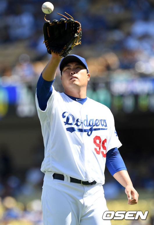 6회 류현진은 마이어스에게 첫 장타를 허용했다. 무사 2루 위기서 류현진은 레예스를 삼진처리했다. 렌프로의 땅볼에 류현진이 1루 커버를 들어가 아웃을 잡았다. 류현진은 2사 3루에서 호세 피렐라를 2루 땅볼로 잡아 위기를 넘겼다. / jasonseo34@osen.co.kr