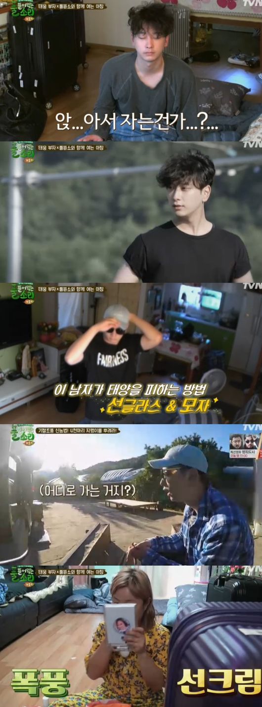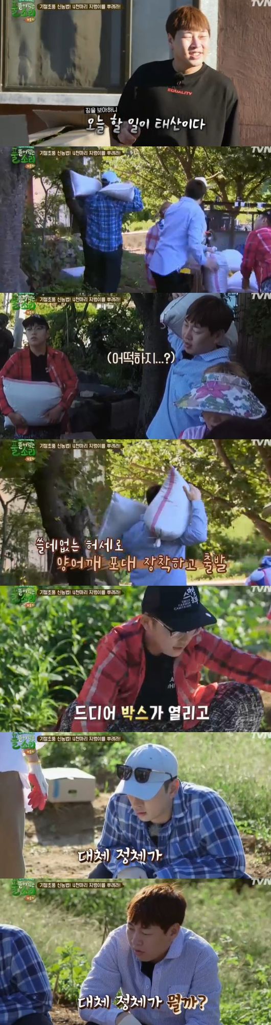 24일 방송된 tvN 예능 '풀 뜯어먹는소리-가을편'에서 노래자랑에 나선 태웅과 농벤져스 황찬성, 박나래, 이진호, 송하윤이 그려졌다.