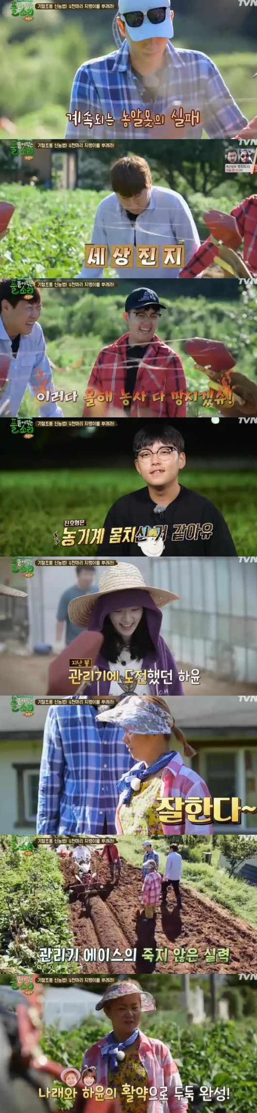 이때, 하윤은 지난시즌부터 관리기 에이스의 실력을 보였다. 나래도 도전했다. 역시 성공적이었다.남자들은 "둘이 잘한다"며 감탄, 나래와 하윤의 활약으로 두둑관리를 마쳤다. 다음은 친환경 농사를 위한 지렁이를 두둑 곳곳에 뿌렸다.