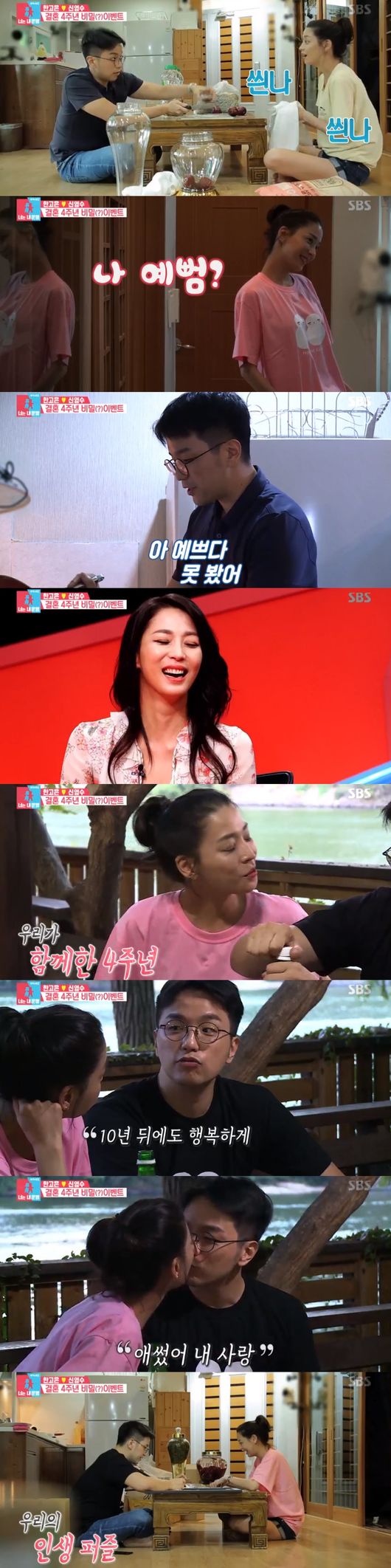 아내를 위해 남편은 오믈렛을 직접 만들었다. 두 사람은 막걸리를 곁들이며 결혼 4주년을 자축했다. 한고은은 "아내랑 결혼해줘서 고마워요. 10주년, 80주년까지 건강하게 오래오래 행복하게 삽시다"라며 애정 넘치는 고백을 했다. 비록 남편이 만든 오믈렛이 덜 익었지만 너무 맛있다며 칭찬을 쏟아냈다.