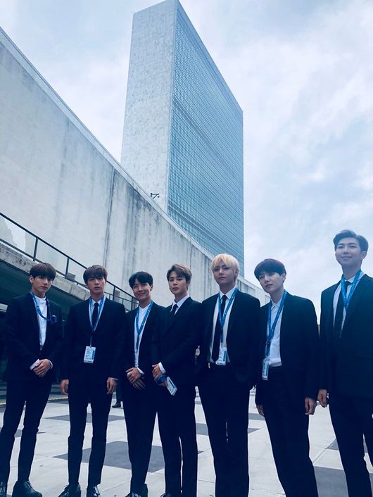 그룹 방탄소년단이 UN총회에서 '자신을 사랑하자'는 내용을 담은 연설을 마쳤다. 이 자리에서 방탄소년단은 김정숙 여사를 만나 인사를 나누며 글로벌 그룹으로서 위상을 입증했다.