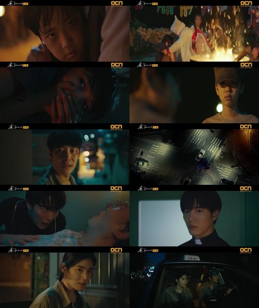 최윤(김재욱 분)은 ‘손’에 사로잡혀 사망한 한신부(남문철 분)의 죽음 이후 무력감과 절망감에 시달리면서도 김영수(전배수 분) 구마의식에 나섰다. 인간의 약한 내면을 집요하게 파고드는 악령에 맞서야 하는 구마의식은 ‘손’과의 사투이자 자신과의 싸움이기도 했다. 인간적인 두려움과 죽음의 공포까지 느끼면서도 구마의식을 진행하는 최윤의 필사적인 의지와 사명감은 긴장감을 넘어 비장함까지 자아냈다. 디테일이 다른 구마의식으로 열연을 펼친 김재욱의 열의와 순식간에 돌변하며 강렬한 에너지를 선사한 전배수의 연기 시너지가 더욱 강력한 소름을 선사했다.