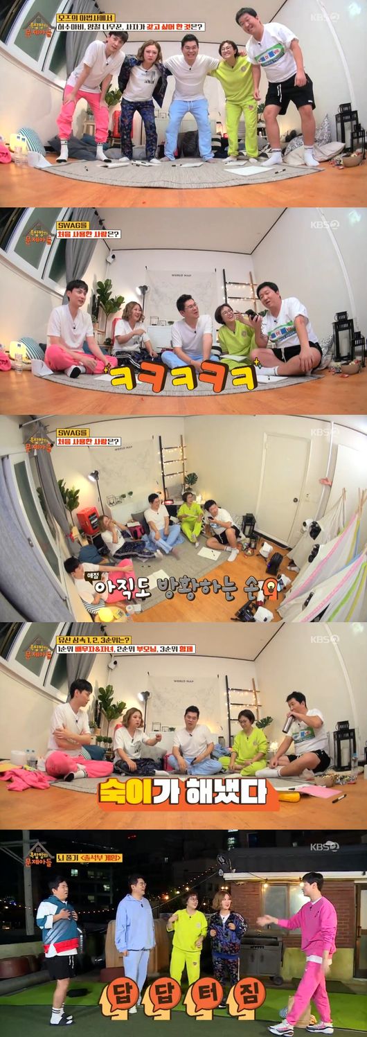25일 오후 방송된 KBS2 파일럿 예능 ‘옥탑방의 문제아들’에서 김용만, 송은이, 김숙, 정형돈, 민경훈이 게임을 통해 퇴근에 도전하는 과정이 그려졌다. 다섯 멤버들은 총 10문제를 모두 풀어야 퇴근이 가능했다.