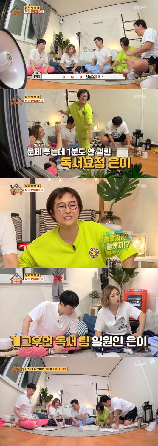 세 번째는 문학작품과 작가 연결하기 문제. 평소 독서를 좋아하는 송은이가 채 1분도 되지 않은 시점에 고민 없이 답을 맞혀 성공했다. 제작진도 놀란 모양새였다.