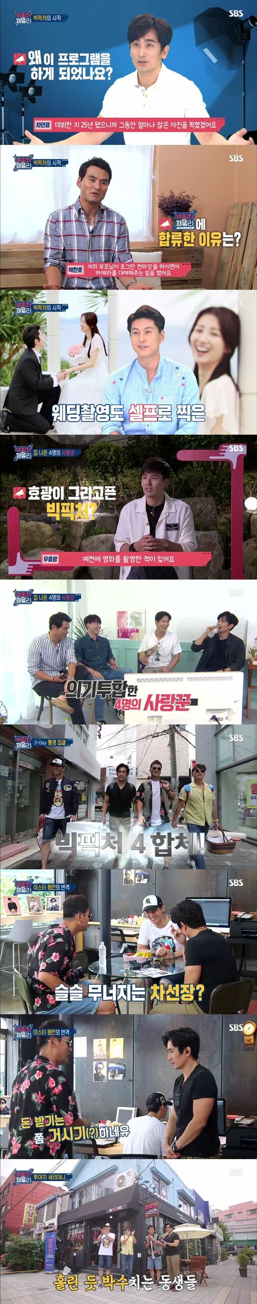 차인표를 ‘빅픽처’를 시작으로 그의 절친인 박찬호, 류수영 그리고 마지막으로 우효광까지 네 명의 사랑꾼들이 ‘빅픽처패밀리’에 합류했다. 네 사람에게는 저마다 사진에 대한 스토리가 있었다. 본격적인 사진관 운영 전, 네 사람은 30일간 손님 응대법부터 필름 카메라 사용법, 보정기술 등을 배웠고, 마침내 디데이를 맞아 경남 통영의 ‘빅픽처 사진관’에 집결했다.