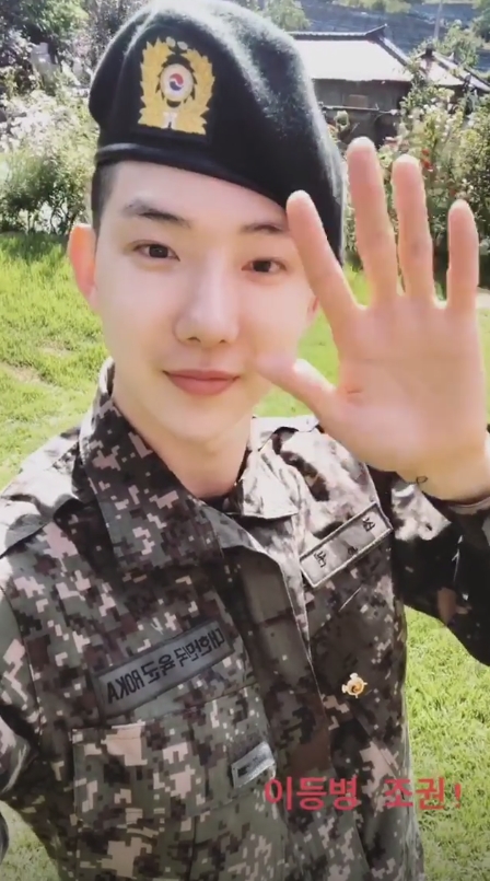 조권은 26일 자신의 인스타그램 인스타스토리를 통해 군복을 입은 이등병 근황을 공개했다.