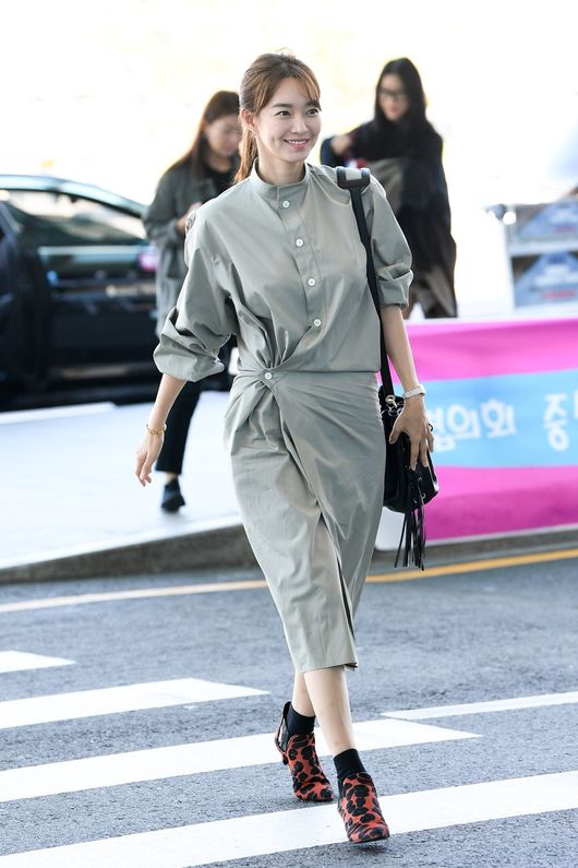 이날 신민아는 선선해진 가을 날씨와 어울리는 공항패션으로 시선을 사로잡았다. 랩스타일의 셔츠 원피스에 태슬 장식이 돋보이는 백을 매치, 시크한 분위기를 자아냈다. 포인트 아이템으로는 올 가을 트렌드로 다시금 떠오른 레오파드 패턴 앵클 부츠를 착용해 패션 센스를 가감없이 드러냈다.