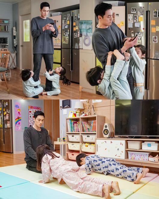 그의 앞집에 사는 쌍둥이 남매는 김본의 다리와 팔에 찰싹 달라붙어 전설의 블랙요원인 그를 옴짝달싹 못하게 만들고 있다. 마치 누군가에게 도움을 요청하려는 듯 안간힘을 다해 핸드폰을 쥔 김본의 빨개진 얼굴 역시 웃음을 유발, 앞으로 펼쳐질 고난과 역경의 육아길을 직감하게 한다.