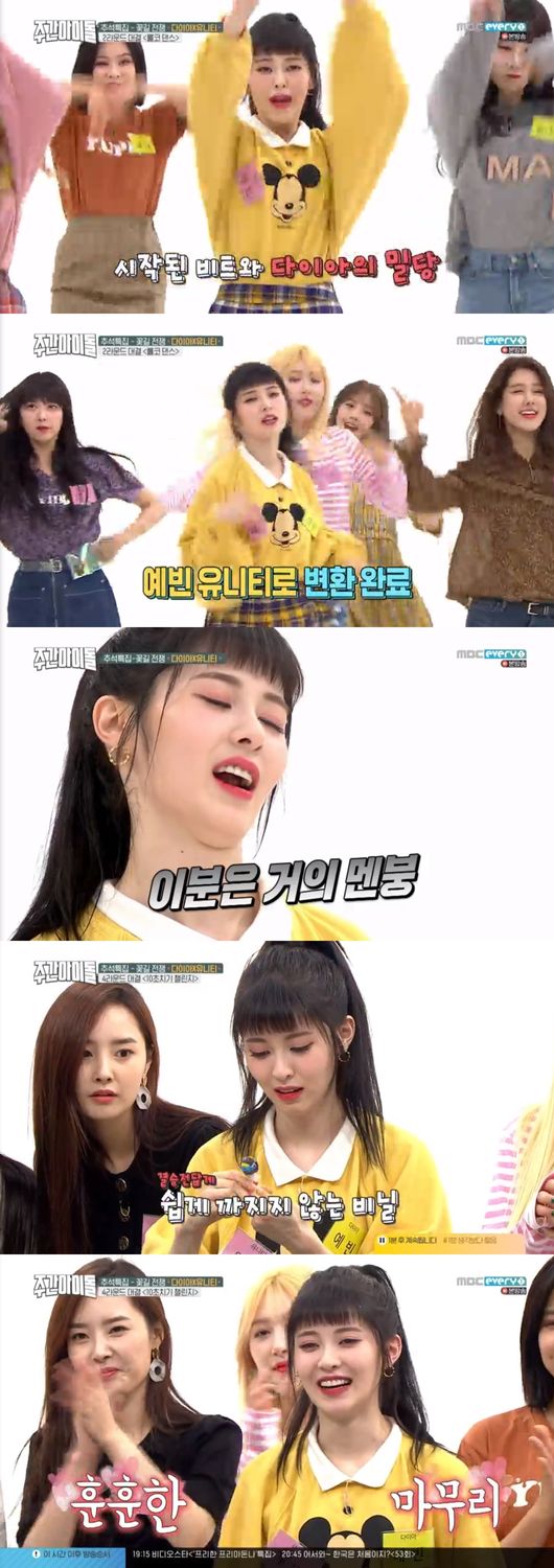 걸그룹 유니티와 다이아가 서열정리에 나선 가운데 두 그룹에서 모두 활동 중인 예빈이 하드캐리를 하며 자신의 존재감을 발산했다.