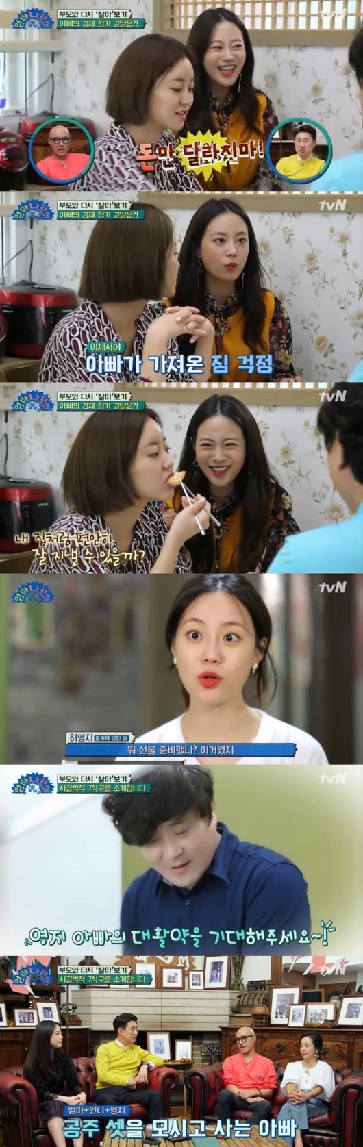 이어 父가 허영지의 강제합가 프로젝트를 고백했다. 허영지는 당황, 이내 이를 받아들였다. 父가 영지가 있는동안 즐겁게 지내고 싶은 마음을 전했기 때문이다. MC들은 "아버지가 엄마와 딸 둘까지, 공주 세 명을 모시고 사는 느낌"이라며 소감을 전했다. 무엇보다 엄마 아빠라는 공통분모 아래 함께 울고 웃은 출연자들의 모습이 훈훈한 감동을 전했다.