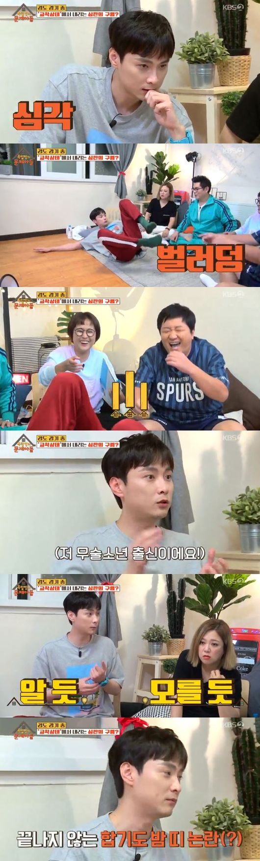 이어 "오늘을 넘기지 말자"고 다짐한 뒤 본격적인 문제풀이에 도전한 멤버들. 제작진은 전화 찬스, 옆집 찬스가 한 번씩 있다고 알려줬고, 외국에서 측정한 스트레스 척도에서 1위를 한 '배우자의 사망'의 뒤를 이은 2위가 무엇인지에 대해 물었다. 이에 멤버들은 "배우자의 외도", "반려견의 사망" 등을 외쳤고 민경훈은 "내 외도"라고 예상치 못한 답변으로 폭소를 유발했다. 그래도 결국 이들이 김용만이 "이혼"이라고 외치며 정답을 맞혀 다음 문제로 넘어갔다.