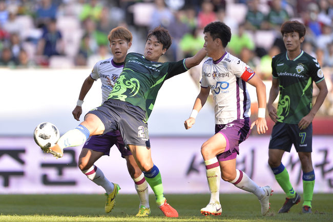 전북 현대는 26일 전주월드컵경기장에서 열린 K리그 1 2018 전남 드래곤즈와 경기서 한교원의 결승골에 힘입어 1-0으로 승리했다. 승점 70점 고지에 오른 전북은 조기 우승을 위한 힘찬 행보를 이어갔다.