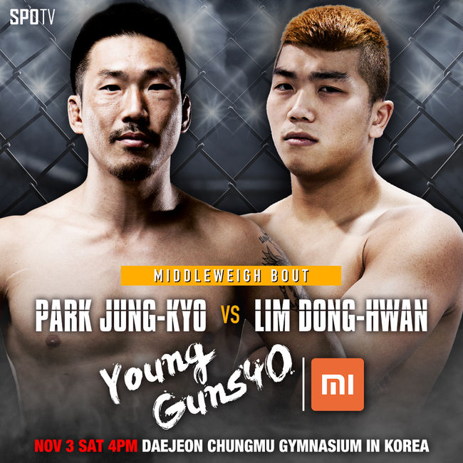 박정교와 임동환의 맞대결은 오는 11월 3일 대전 충무체육관에서 열리는 XIAOMI ROAD FC YOUNG GUNS 40 메인이벤트로 치러진다.