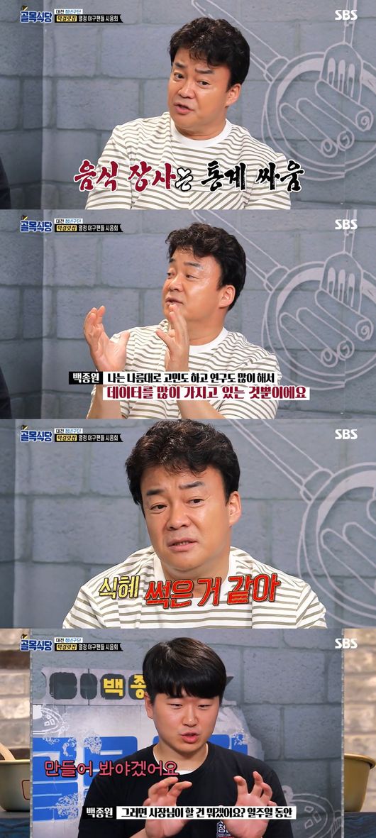백종원은 막걸리집 사장에게 음식장사는 통계싸움이라는 독특한 조언을 했다. 백종원은 "고민하고 연구를 한 경험이 많아서 다른 사람에 비해 데이터가 많을 뿐이다"라며 "음식장사는 통계싸움이다"라고 말했다.
