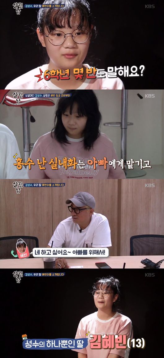 지난 26일 오후 방송된 KBS 2TV '살림하는 남자들 시즌'(이하 살림남2)에서는 51살 싱글대디 김성수가 13살 딸과 함께 등장했다. 김성수는 혼자서 13살 초등학생 딸을 돌보기 위해서 최선을 다했다.
