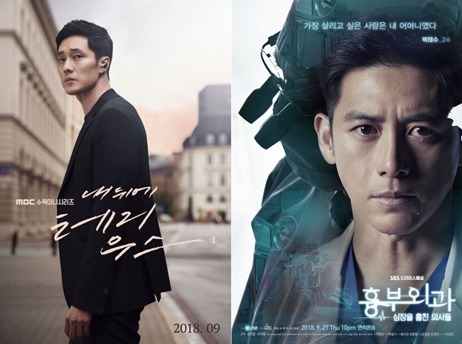 MBC 수목드라마 '내 뒤에 테리우스'(극본 오지영, 연출 박상훈 박상우)와 SBS '흉부외과:심장을 훔친 의사들'(극본 최수진 최창환, 연출 조영광)가 27일 오후 10시에 동시에 시청자들을 만난다. 추석 연휴 이후 본격적인 안방극장 대전의 시작을 알리고 있다.