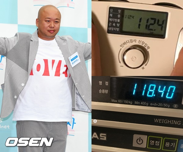 사진 속에는 돈스파이크가 추석 연휴 전후에 기록한 몸무게인데 추석 전에는 112.4kg이었지만 추석 후에는 118.4kg이다. 정확히 6kg이 찐 것.