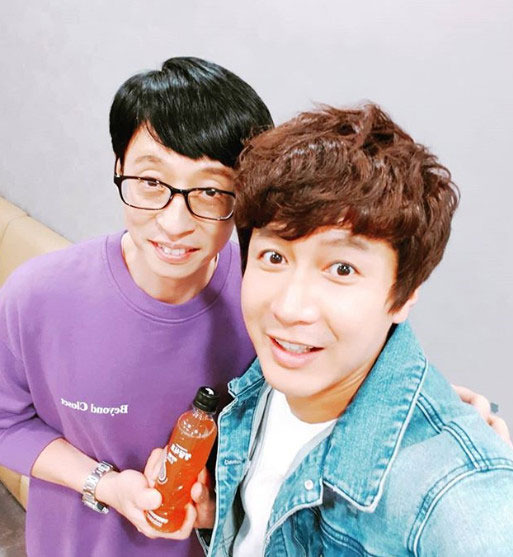 사진 속 김승현과 유재석은 익살스러운 표정과 미소를 지으며 카메라를 응시하고 있다.