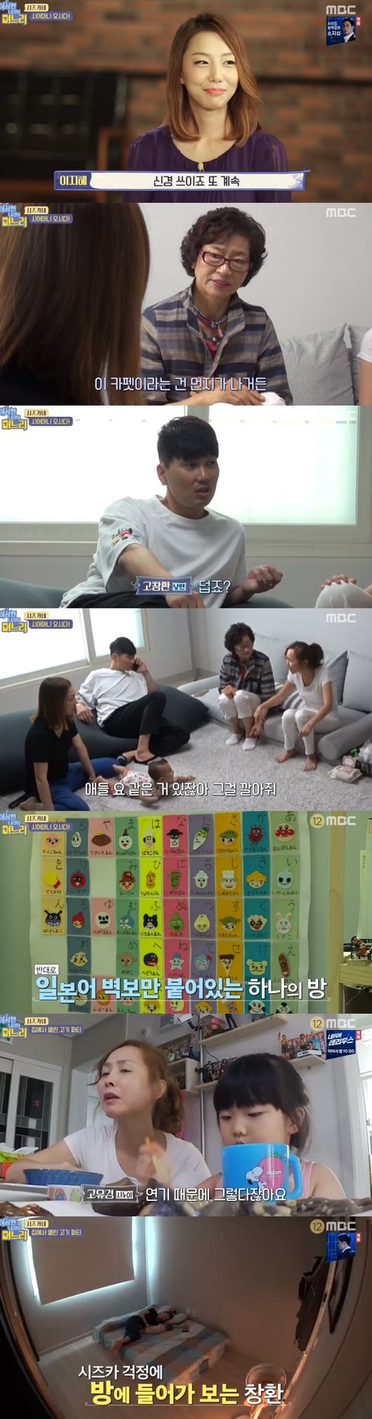 시어머니가 거실의 카펫을 보고 "카펫이 아이한테 너무 안 좋아. 아이들이 엎드리고 그럴 때 건강에 너무 안 좋다. 그러니까 카펫을 걷는 게 좋을 것 같다. 카펫은 먼지가 많이 난다"고 조언했다.