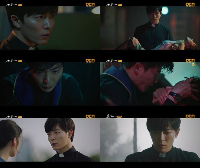 지난 28일 방송된 OCN 수목드라마 ‘손 the guest’(극본 권소라 서재원/ 연출 김홍선) 6회에서 최윤(김재욱 분)은 큰 귀신 박일도를 쫓는데 자신의 삶을 걸기로 했지만, 교구의 통보로 인해 구마사제직에서 물러나게 됐다. 더불어 부마자의 환청까지 듣게 되는 모습이 그려지면서 긴장감을 자아냈다.
