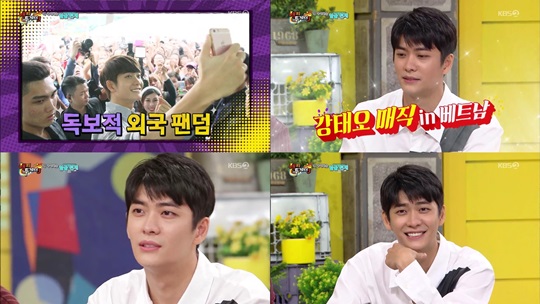 이날 방송에서 강태오는 엉뚱한 매력으로 재치 있게 에피소드를 풀어냈다. 베트남 합작 드라마 '오늘도 청춘'이 동시간대 시청률 1위를 기록하며 '베트남 프린스'로 불릴 정도로 큰 인기를 얻은 강태오는 주최 측의 초청을 받아 가벼운 마음으로 참가했던 시상식에서 남우 주연상을 받아 너무 놀랐다고 말해 시선을 집중시켰다. 또 그는 청와대에서 이뤄진 베트남 정상회담에 초대받았었다며 식사로 나온 "연근마저 영롱해 보였다"고 이야기해 웃음을 자아냈다.